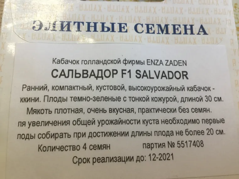 Кабачки сажаю только цукини. В прошлом году перепутались семена и вместо патиссонов вылезли тоже кабачки. Очень много пропало. Не смогли съесть. Все малоежки какие-то. Одного моего знакомого при слове кабачок трясет. Если урожайный год, то их так много, что съесть все не получается, поэтому буду сажать мало. В упаковке 4 семечка!!!