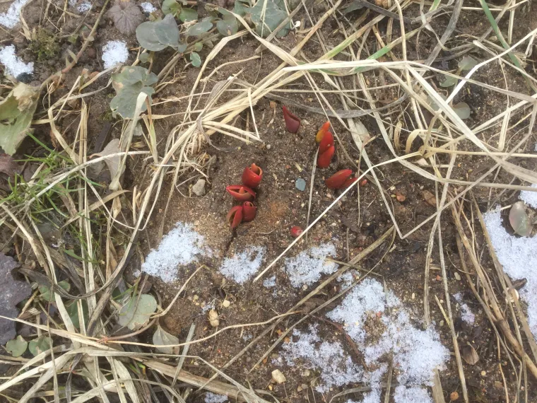 23 марта. Ни одно из семян, посаженных неделю назад не взошло. Показать пока нечего. Но зато активно таит снег и начинают прорастать весенние цветы. У меня это тюльпаны.