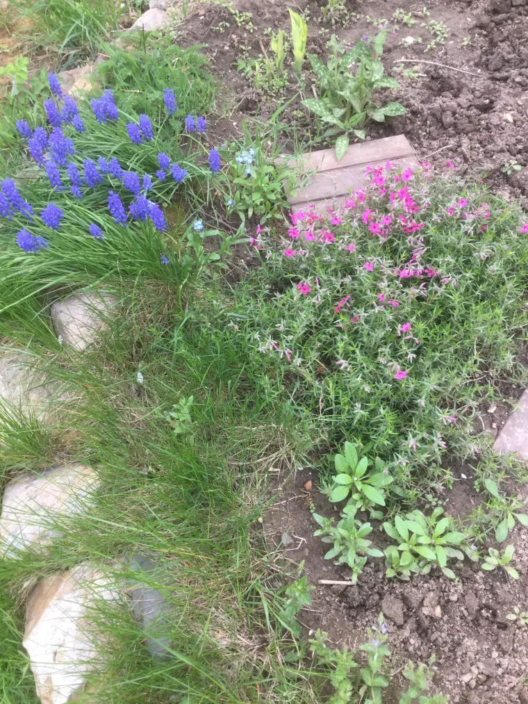 3 мая. В Подмосковье холодно. Погода скорее напоминает осеннюю, чем весеннюю. Пока что-то делаешь вроде не мерзнешь, но стоит остановиться и начинаешь замерзать. Приходится очень тепло одеваться. Пару лет назад мне очень хотелось купить хризантему мультифлору. Мои попытки не увенчались успехом, в наличие цветка не было, а тут случайно разговорилась с соседями и о чудо! Я теперь обладательница этого цветка. Пока не знаю как он приживется, но начало положено. Мне так хотелось заполучить это растение, так хотелось, что я не смогла посадить его на задворках и отвела отдельную клумбу. Пусть нас порадует.