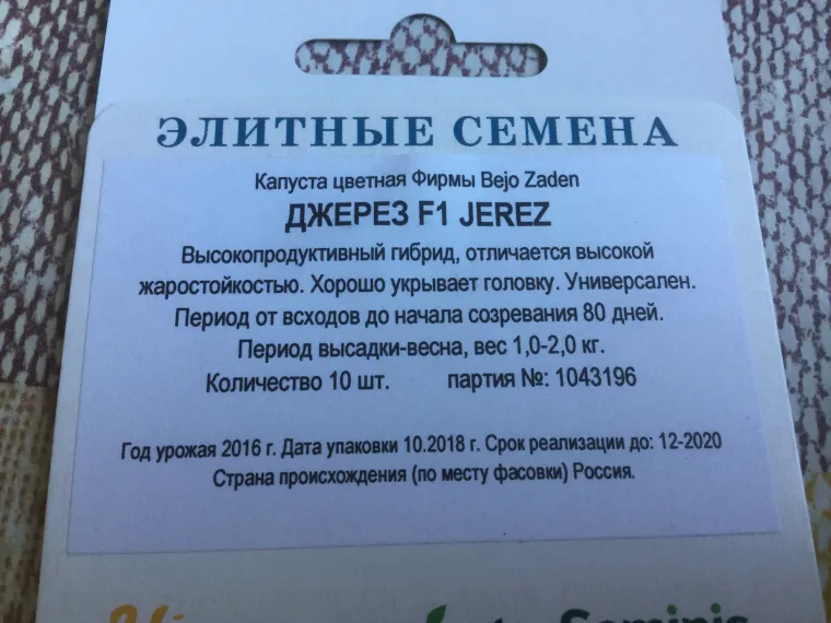 Капуста цветная. Как-то у меня не очень получается ее выращивать, поэтому только один пакетик.