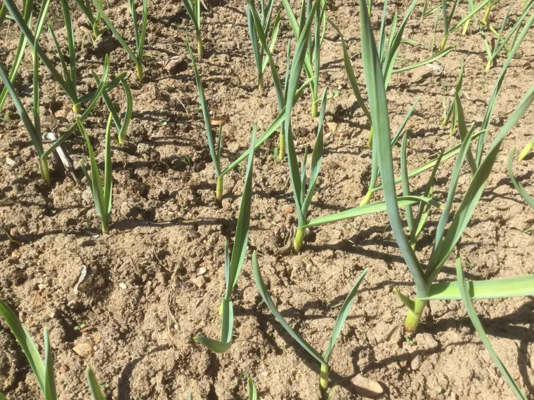 Если уж перешли на улицу, то очень порадовали грядки с чесноком