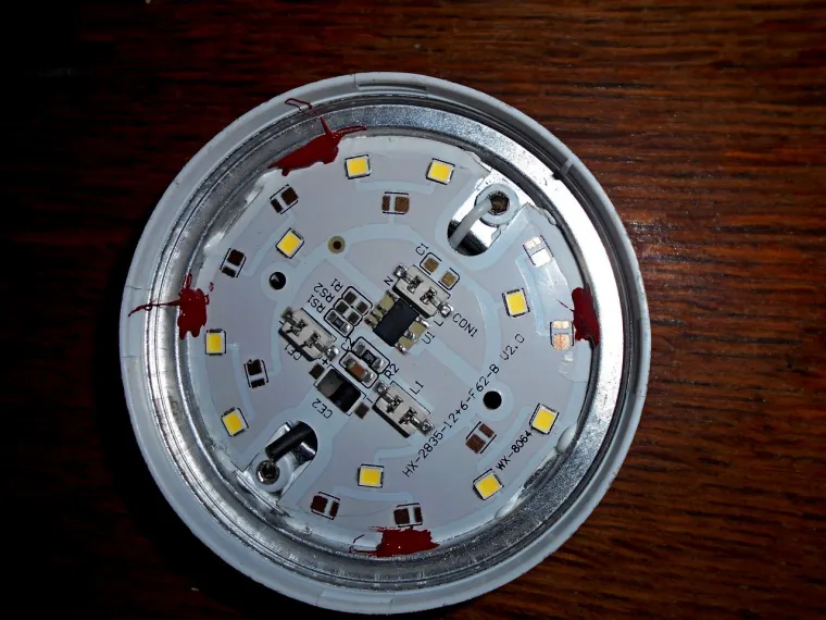 Примерно тем же я занимался, когда измерил температуру у новых лампочек... Тогда пришлось "сбросить" ток диодов, а также припаять электролит по выходу... Кстати, лампочка которая не было доработана до сих пор работает, но у нее лопнул корпус (продольная трещина от колбы к цоколю)... Как нибудь об этом напишу...