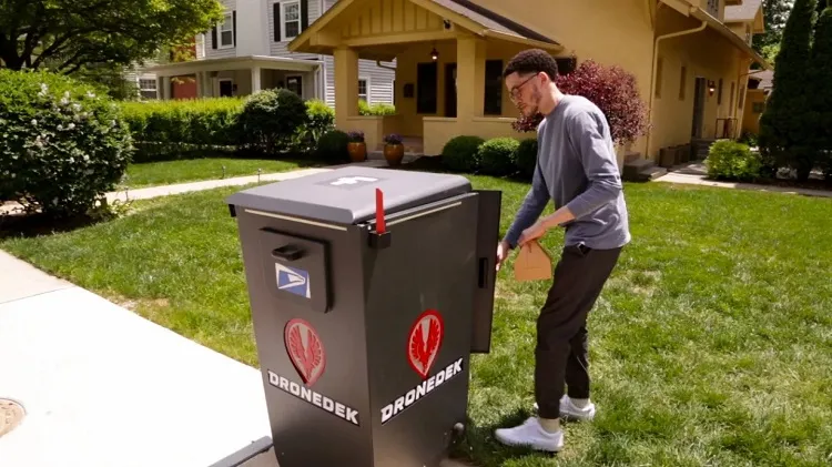 Сначала придумали почтальонов дронов, а потом задумались: а что, если дрон не застанет человека дома? Как тогда передать ему посылку? И разработчикам компании из Индианаполиса (США) пришла идея создать умный почтовый ящик. Поначалу это будет просто емкость для приема почты, однако развивая глобально эту идею, планируется создать специальное приложение для заказа товаров и продуктов у компаний, участвующих в проекте и готовых применять совместимые технологии. Для доставки к месту требования задействуют GPS-координаты, которые будут своего рода «маячком» на почтовом ящике. По прибытию на место передачи посылки беспилотник сообщает ящику специальный код. После его получения ящик откроет крышку, куда дрон спустит посылку в контейнер с помощью специального выдвижного троса. Потом крышка закрывается и дрон возвращается на базу. Кроме того на ящике доступна функция беспроводной зарядки. Поэтому при необходимости дрон может подзарядиться. После доставки посылки дальше события происходят в самом ящике. DroneDek сканирует QR-код посылки, чтобы идентифицировать заказ. Далее он свяжется с владельцем, который получит уведомление о доставке. По видеосвязи владелец может посмотреть на посылку с помощью камеры и подсветки внутри ящика. Для извлечения посылки потребуется интегрированный биометрический сканер, цифровой код замка или специальный код из приложения. Такой ящик может выполнять функции и классического почтового ящика. Начало продаж запланировано на 2022 год.
