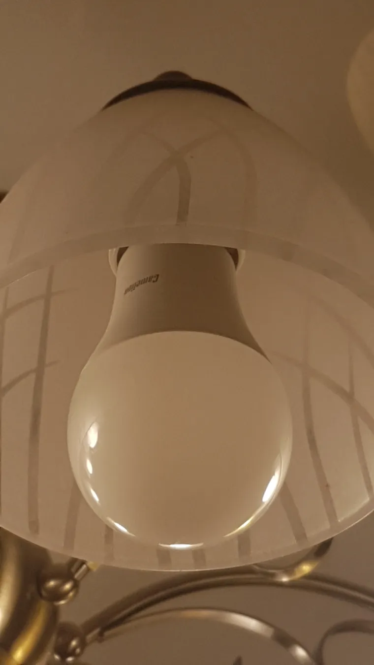 Собираю лампочку до конца, вкручиваю в люстру на место лампочки из последнего моего обзора на ~~светодиодное барахло~~ высокотехнологичный современный источник света с цоколем Е27. Работает!