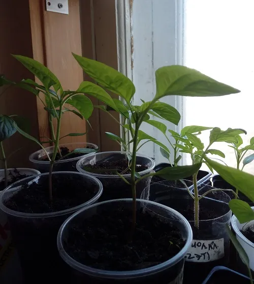 Перцы начали массово расти. Но вытягиваются. Света не хватает пока