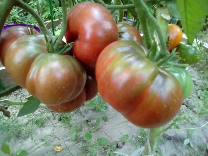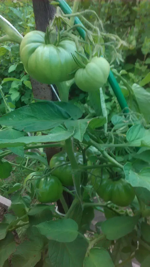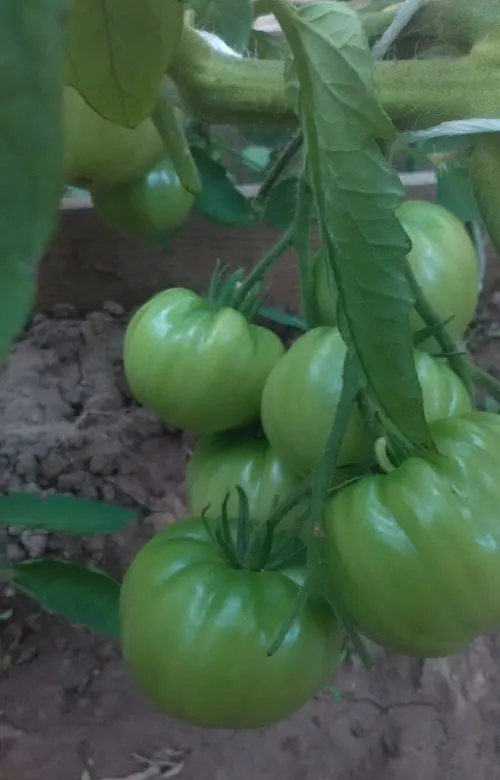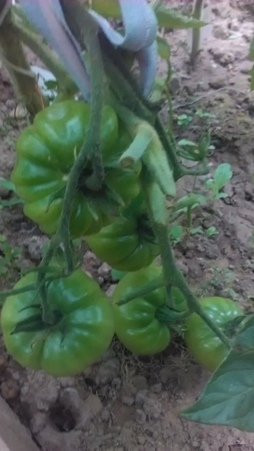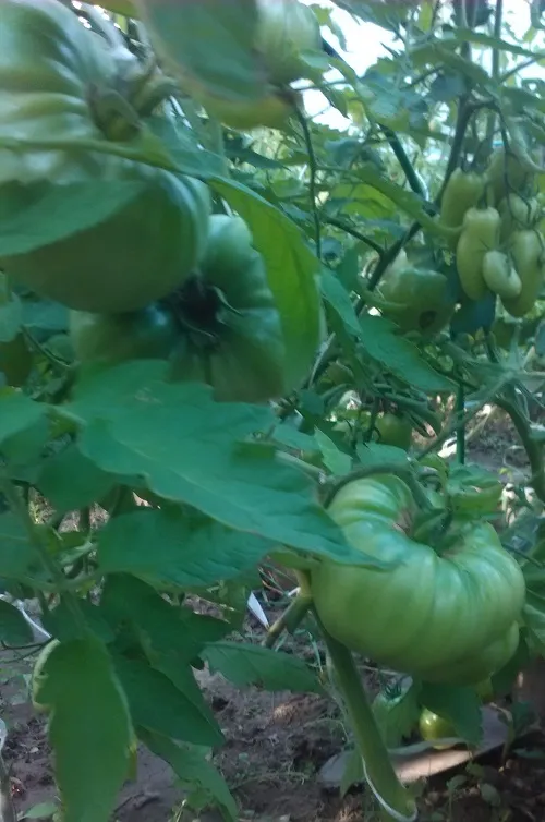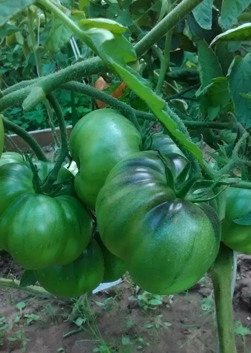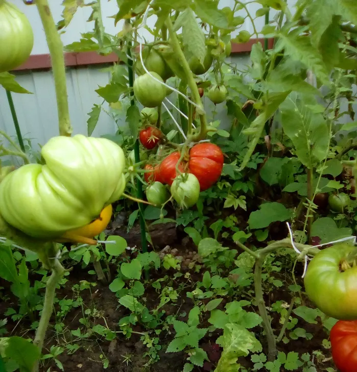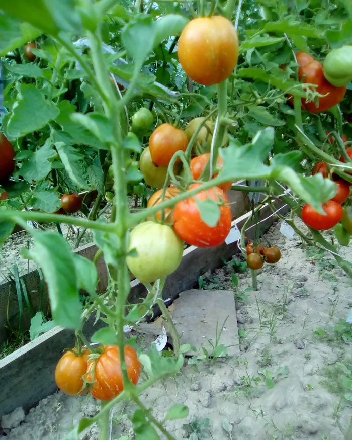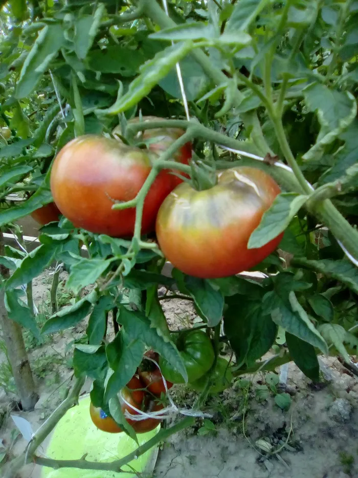 Многие сорта, потеряв 2 и 3 кисти из-за жары, наали усиленно наращивать первые кисти. Есть просто очень большие томаты.