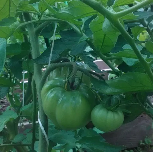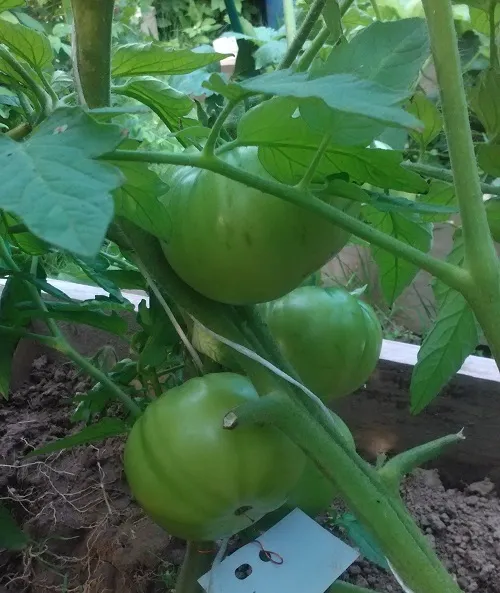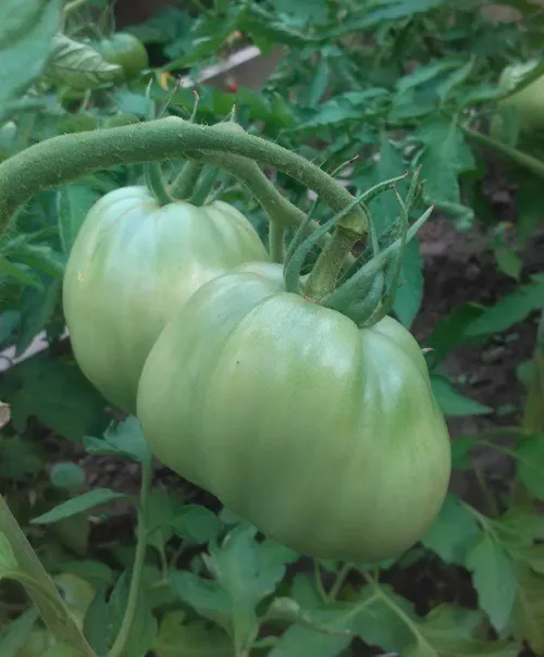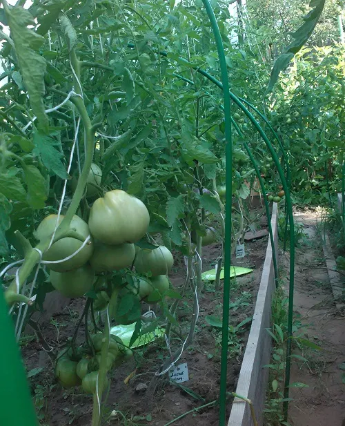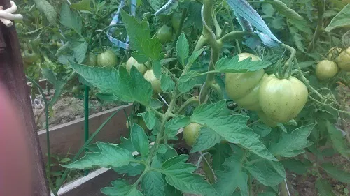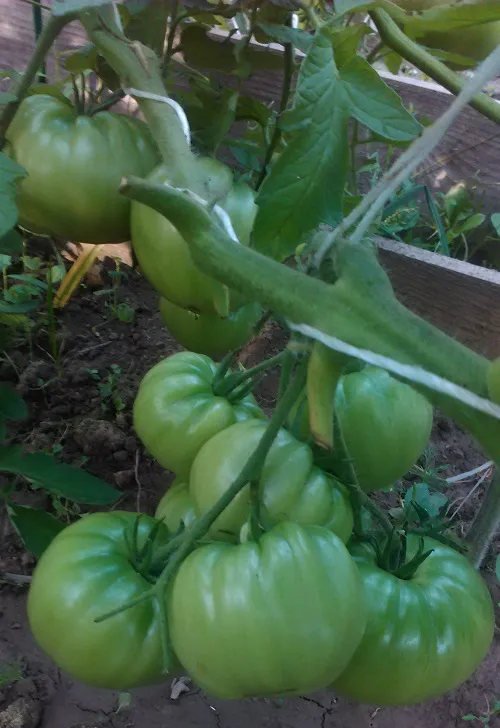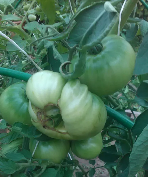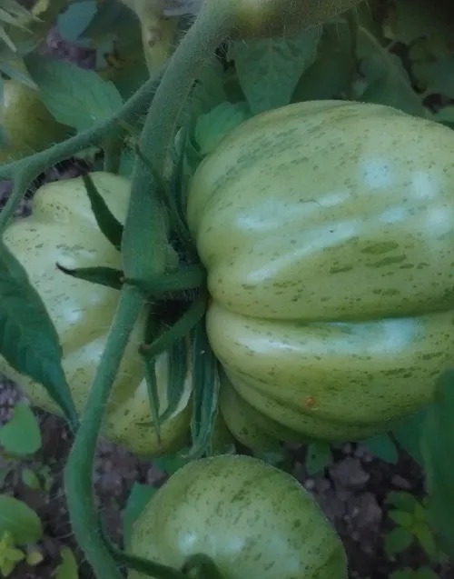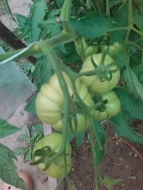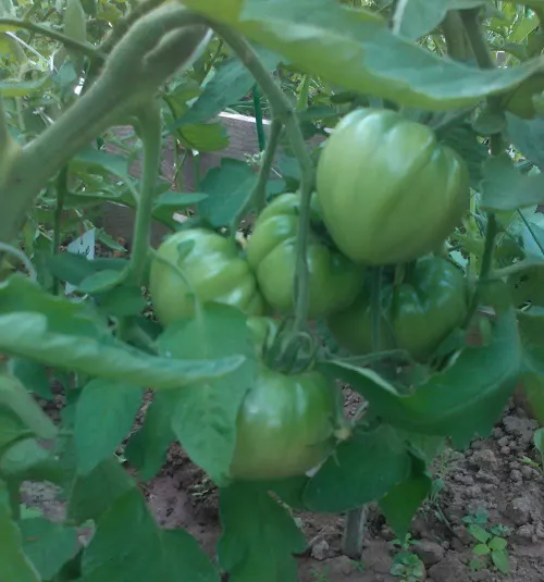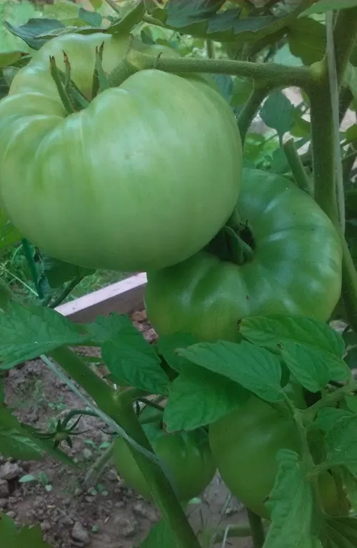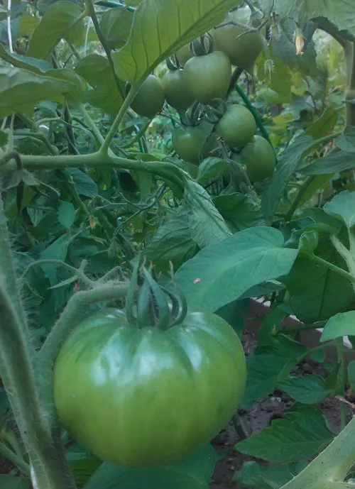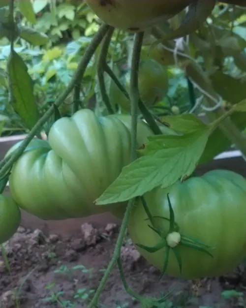 Многие сорта, потеряв 2 и 3 кисти из-за жары, наали усиленно наращивать первые кисти. Есть просто очень большие томаты.