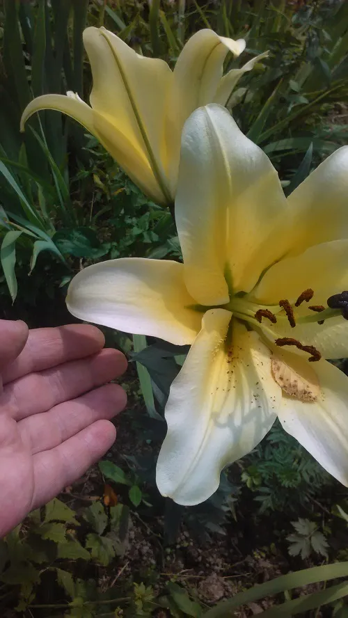 Размер, конечно, поражает. Огромная лилия. И пахнет на весь участок
