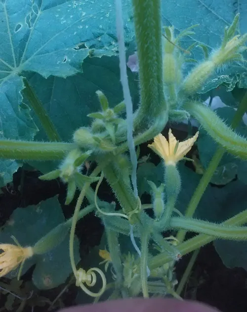 Огурцы. Вымахали огромные жирные лоси. Завязей очень много, огурцов пока нет.