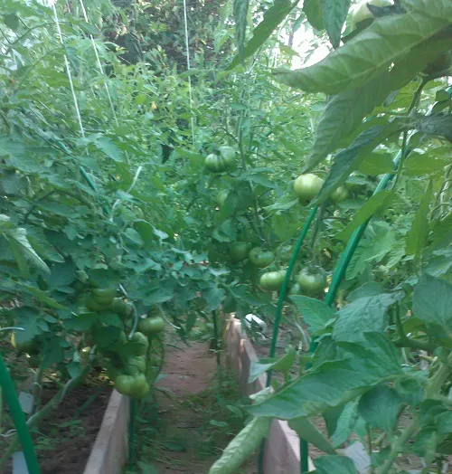 Ну, если прикидывать сборы и поедание в салатах - пока собрали примерно 25 кг. Это,конечно, мало. Но посмотрим, что дальше будет. Помидоры на кустах висят и красные и зеленые.