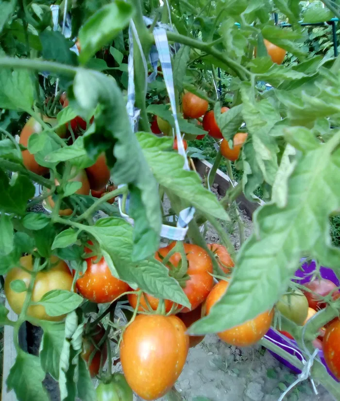 Оранжевый из России ( на первой кисти один томат, но уже грамм 500) , 2 и 3 пропустил, сейчас вяжет 4 - посмотрим что будет.
