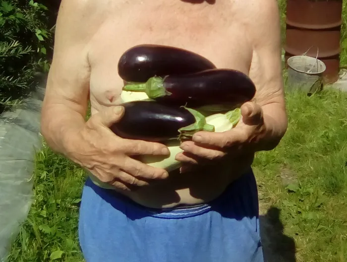 Баклажаны Неплохой был урожай, но мог быть больше. Ошибки. Посадила на грядку, где в прошлом году сидели помидоры. Нельзя. Болеют одними и теми же болезнями. Весной надо было больше проливать грядку фитоспорином. ПОсадила не гибриды, а сорта. Больше так делать не буду. Только гибриды из профупаковок мировых производителей. Баклы летом заболели фузариозным увяданием. Борьба описана выше в дневнике. Помогало на какое то время. Потом, в августе плюнула. Они постояли-постояли... и перестали болеть. Растения были можные, пожтому им хватало,видимо, только опрыскивания Триходермином и Гуапсином.