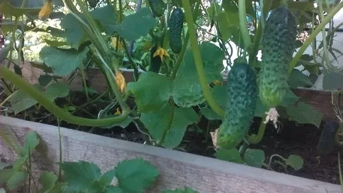Огурцы. Собрали примерно 3 кг. Растут хорошо, но следующая неделя с дождями и понижением температуры. Тормознутся, конечно.