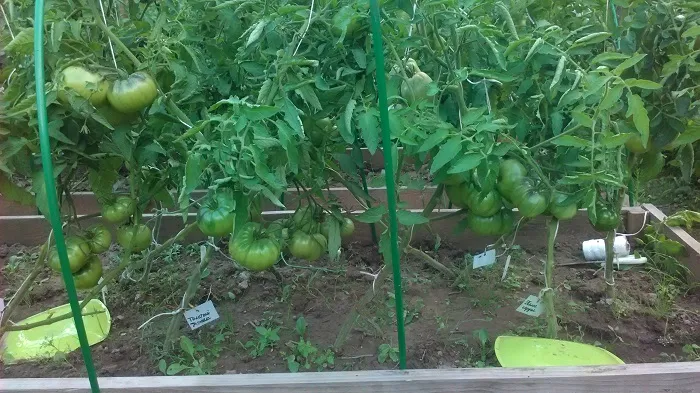 Ни смотря ни на что вяжут и растут плоды Гибрид Тарасенко2, Ребелион, Руфа ( первая завязала плоды). Начали раскачиваться детерминантные сорта Толстый Джек ( плодов пока мало, но крупные), Волшебник, Золотое сердце. Каскад лава - вяжет и вяжет, плоды пока чуть меньше грецкого ореха, но они вроде не должны быть большими. Остров Гернси. Самые большие надежды по вкусу у меня на этот томат. Вяжет неплохо. Ну,все это,если не считать опадения цветков из-за жары.