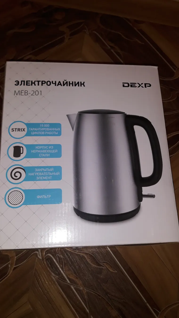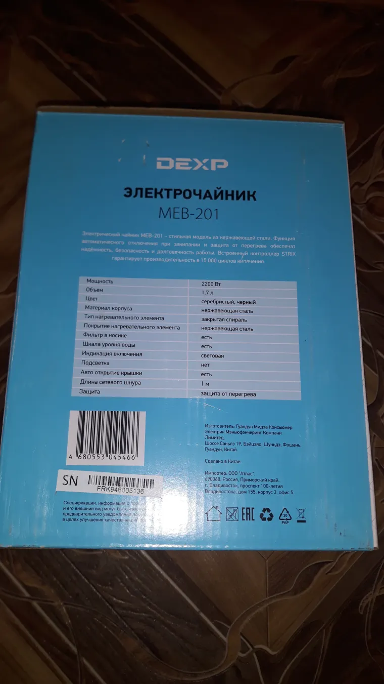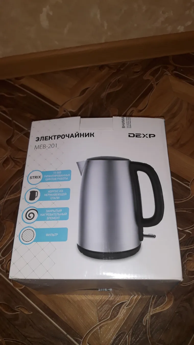Всем привет, сегодня проведем распаковку вот этого китайского электрочайника DEXP. Данный чайник зарекомендовал себя отлично, мне такой же служит уже полтора года и не думает пока подводить, пользуюсь каждый день им! И так, рассмотрим коробку: