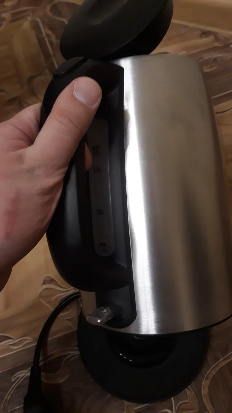 Ну пальцами та за корпус не всегда возьмешься)) А как же вы его будете подключать? ведь у него мощность 2,2 кВт, не в в каждую розетку его вставишь... Интересно шкала уровня воды расположена под ручкой. Не видел такого... Вот у меня давно был подобный чайник, но очень дешевый и низкого качества... Там была как раз проблема с выключателем... от отщелкивался, но цепь не разрывалась...
