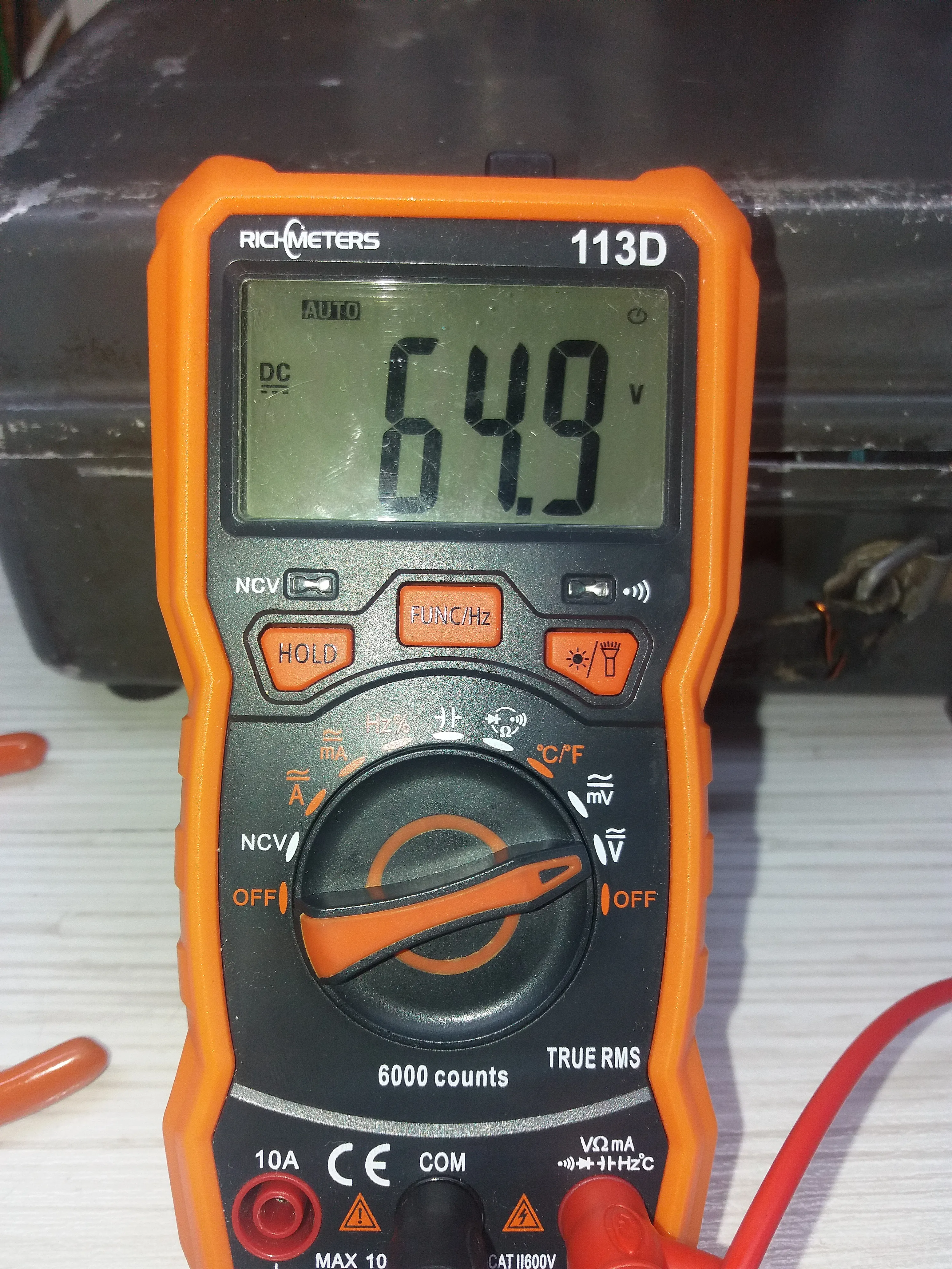 Нагружаю ЭПРА ЛЛ 36 Вт и подаю на вход 64,9 Вольт .