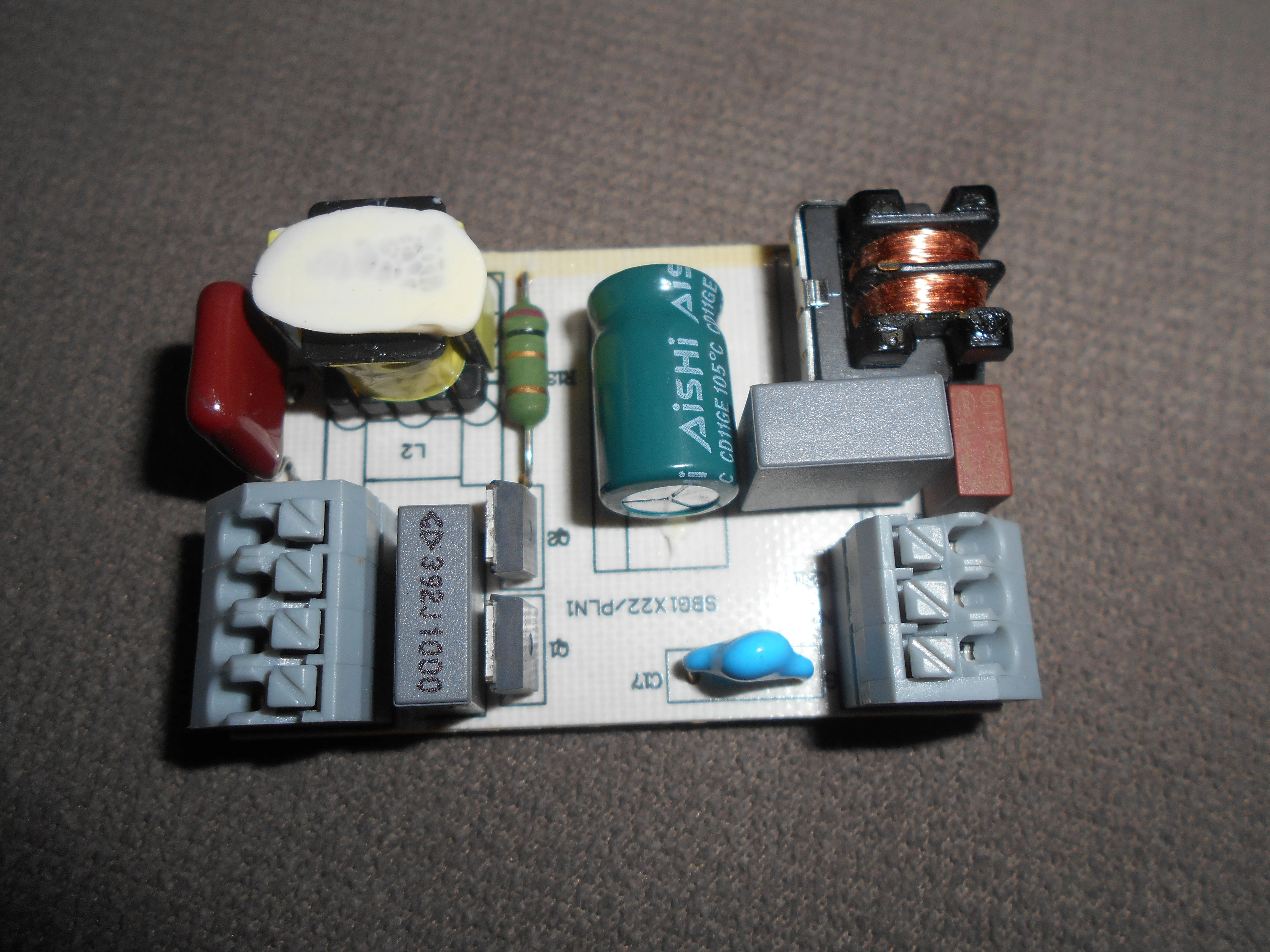Перед нами плата ЭПРА . На удивление присутствует конденсатор "правильной фирмы " , честный дроссель , фильтр ЭМС .