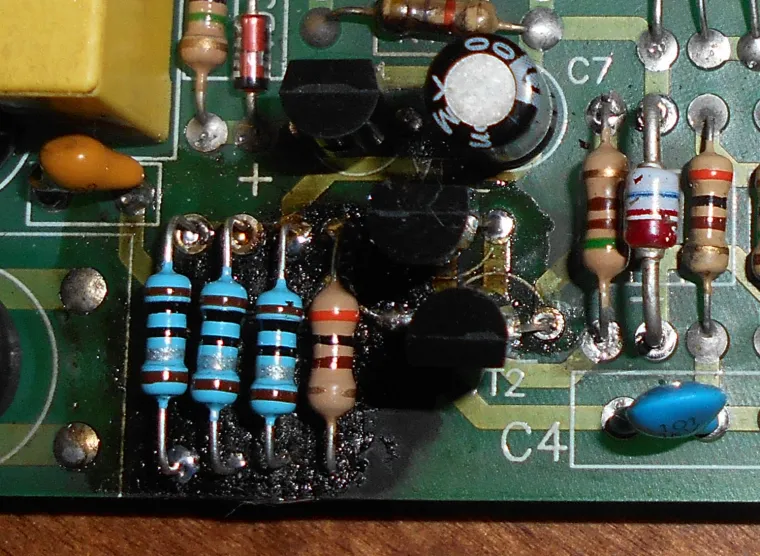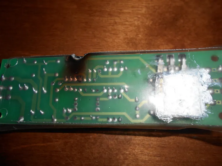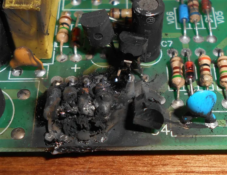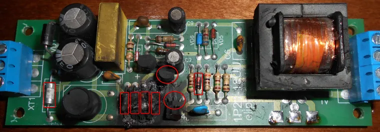 Была бы схема.... Неужели осадки попали какие-то? Влага? Странно, что ничего другого поврежденного на вид, видно... Вообщем, варианты стандартные -