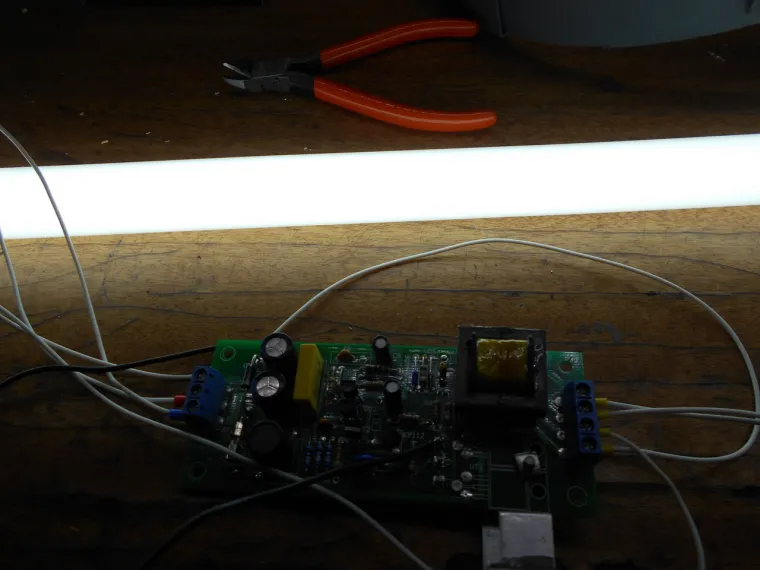 И еще один момент . Лампа иногда зажигается уверенно , а иногда просто вспыхивают края с периодичностью 30 сек. Насколько я понял от емкости конденсатор C9 зависит время прогрева катодов при запуске .