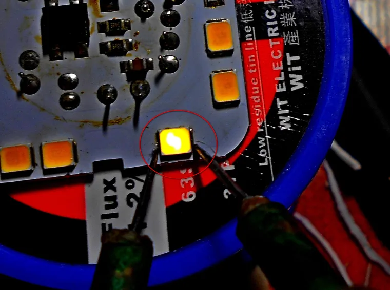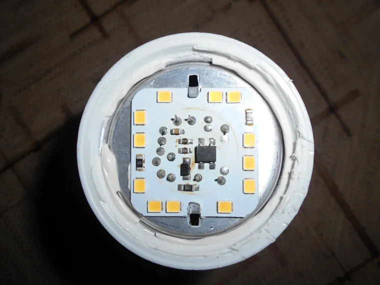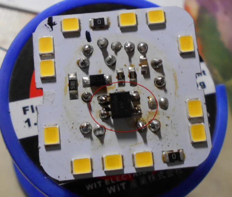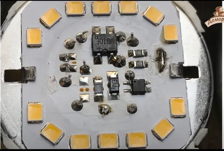 @Андрей-Туманенко Это видимо уникальный случай, когда сгорел элемент блока питания, а не сами светодиоды. Видимо диодный мостик совсем на пределе работал? А может температура запредельная была для него? Эта лампочка, чем-то похожа на лампу другой фирмы, которую исследовал @Светотехника, а также @Схемотехник.