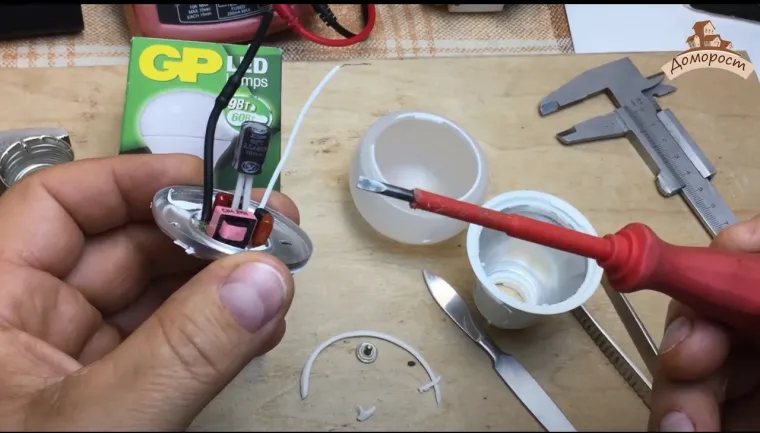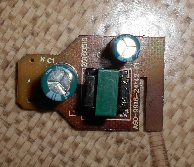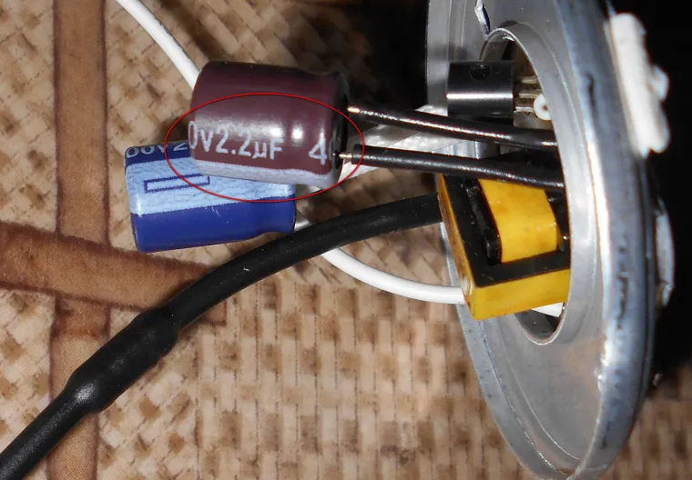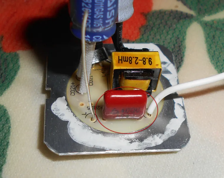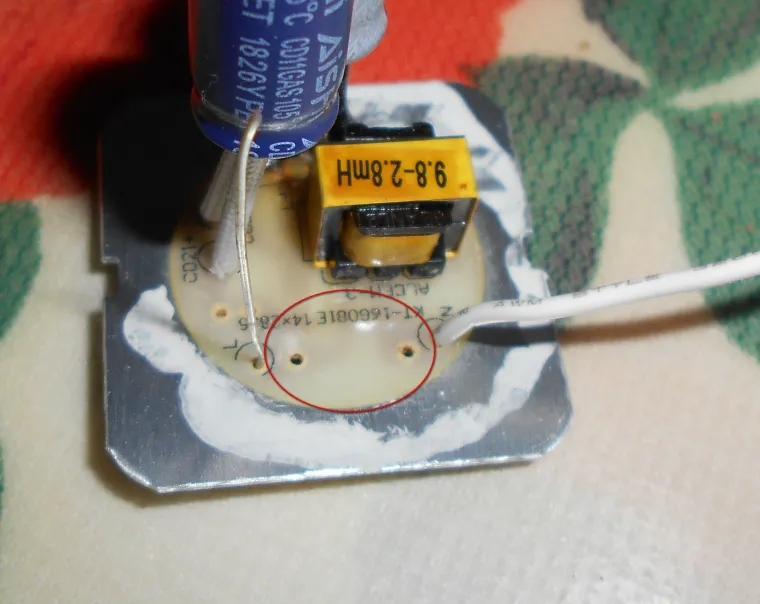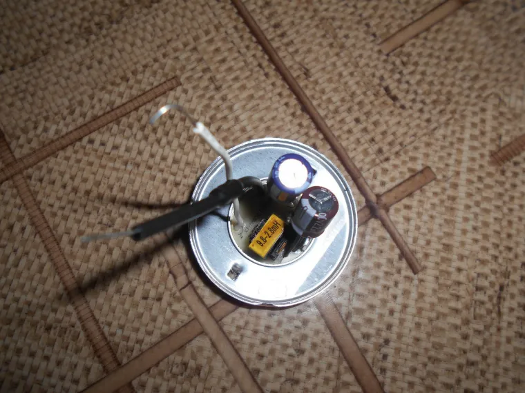 Включаю - работает ! Собираю в обратной последовательности на клей - герметик . Но еще добавляю конденсатор 100 нФ 400 Вольт . Изначально его нет , но место под него есть