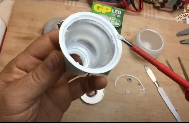 ну вот собственно и все осталось приклеить рассеиватель , авось лампа еще поживет