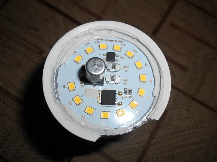 Все верно я слегка "погонял" оставшиеся светодиоды и лампа стала мигать. При проверке от внешнего источника выявил еще один полумертвый светодиод. Он стоит подальше от микросхемы. так , что дело не в ней. Тогда вторая версия ! На клей герметик приклеивают рассеиватель , но сама плата просто плотно вставляется в корпус лампы. Плата не идеально груглая и есть щели . Может это влиять на отвод тепла ? Или дело все таки в качестве светодиодов? Они стоят на Алиэкспресс копейки и я так думаю это самый дешманский вариант .