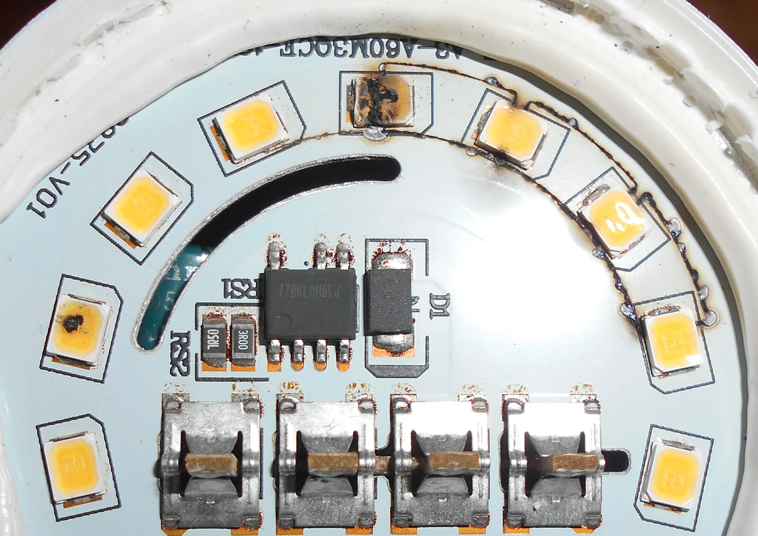 У "Навигатора" тоже возникли проблемы с изоляцией рядом со светодиодами. Но там лампочка была реально ушатаная. А здесь - как новая... Видимо, лампа не так много проработала...