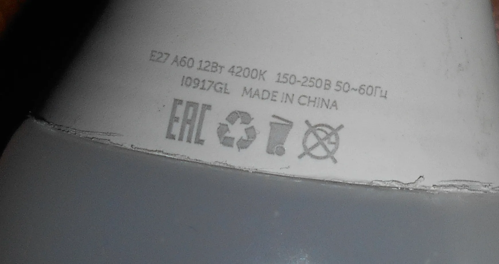 В корпусе А60 , с заявленной мощностью 12 Вт . Дата производства 17 сентября 2020 года .
