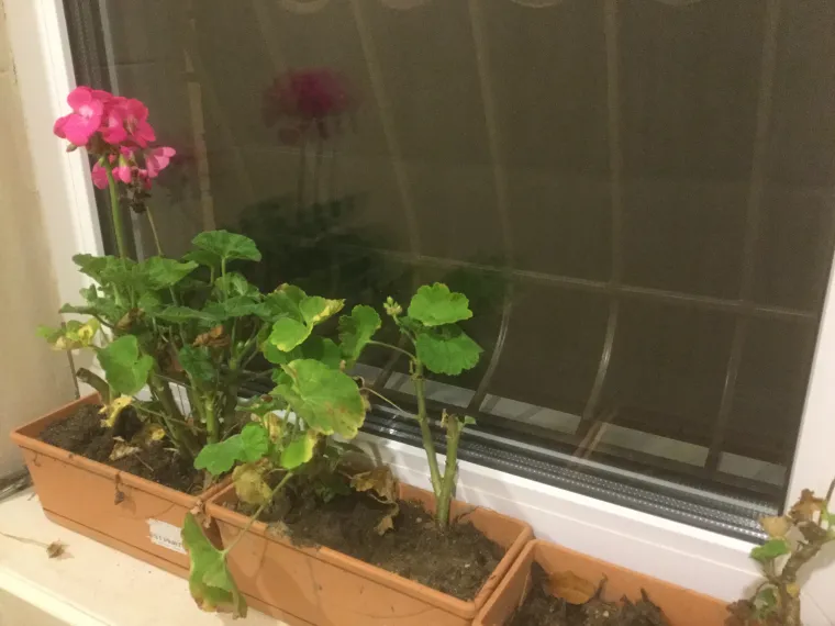 Приходится сохранять цветы до весны. Погода стоит очень теплая, поэтому герань еще может постоять на улице. А зима все равно придет и чтобы весной не остаться без разнообразных кустов герани, пересаживаю по одному кустику каждого цвета в горшки и заношу в дом.