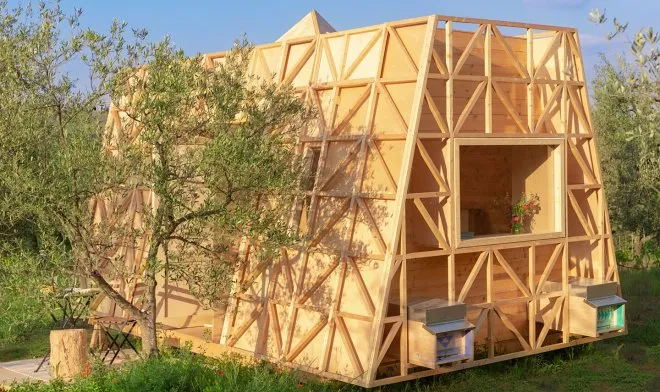 В рамках Всемирного дня пчел, который прошел 20 мая, итальянский пчеловод Рокко Филомено презентовал небольшое жилище, собранное своими руками. Домик получил название «Wonder Bee & Bee» и расположен в оливковом саду Италии недалеко от южной итальянской деревни Гроттоле. Особенность жилища – улей под потолком, в котором живут порядка миллиона пчел.