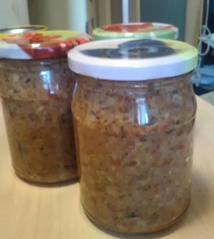 Икра должна потомиться минут 20-30. В конце - выдавливаем чеснок и подсаливаем. Можно добавить черный перец. Все по вкусу. Перекладываем икру в стерильные банки, закручиваем.