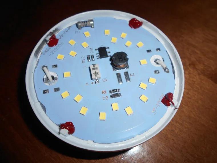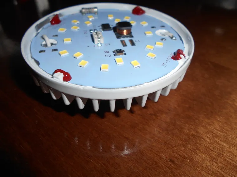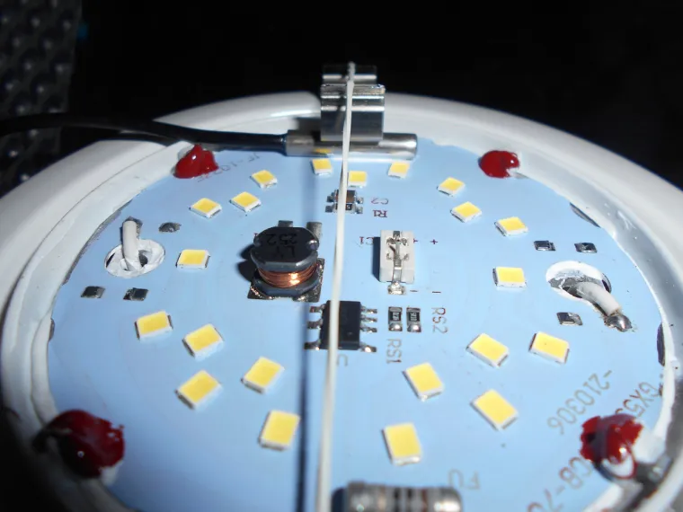 Данная лампочка хороший пример, как можно свести на нет все имеющиеся преимущества… Ну неужели сложно было найти каплю термопасты, и влепить импульсный драйвер (хотя бы на плате) ну или на худой конец, поставить линейный драйвер. Нет же… Выбран худший из возможных вариантов…