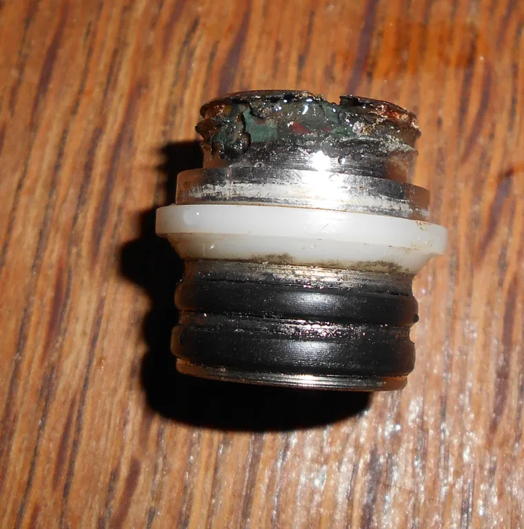Вот как вода смогла разъесть так латунь ? Могла, т.к. это силумин . В общем мажем смазкой SILICOT из Санкт Петербурга