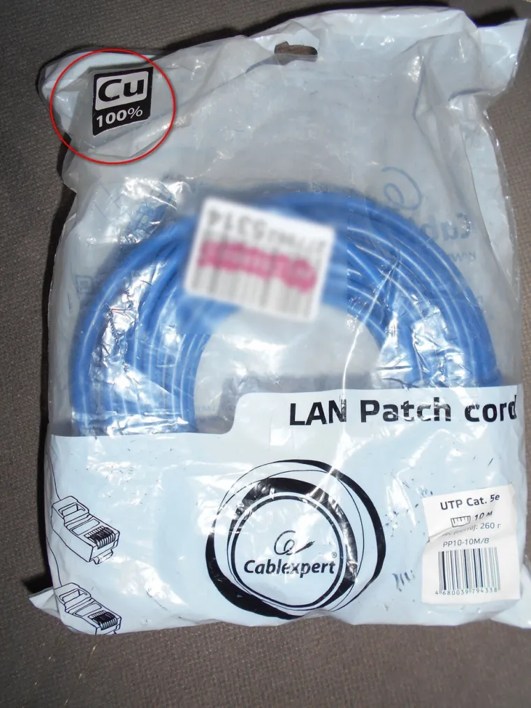 @Схемотехник на фото патч корд китайский . Но изготовлен он в 2018 году. Сейчас точно такой же но без ярлычка "CU100%" и в описании написано омедненый алюминий. А про кабель из России пишу потому как недавно изучал чего есть в продаже . И нарвался на якобы российский UTP из меди