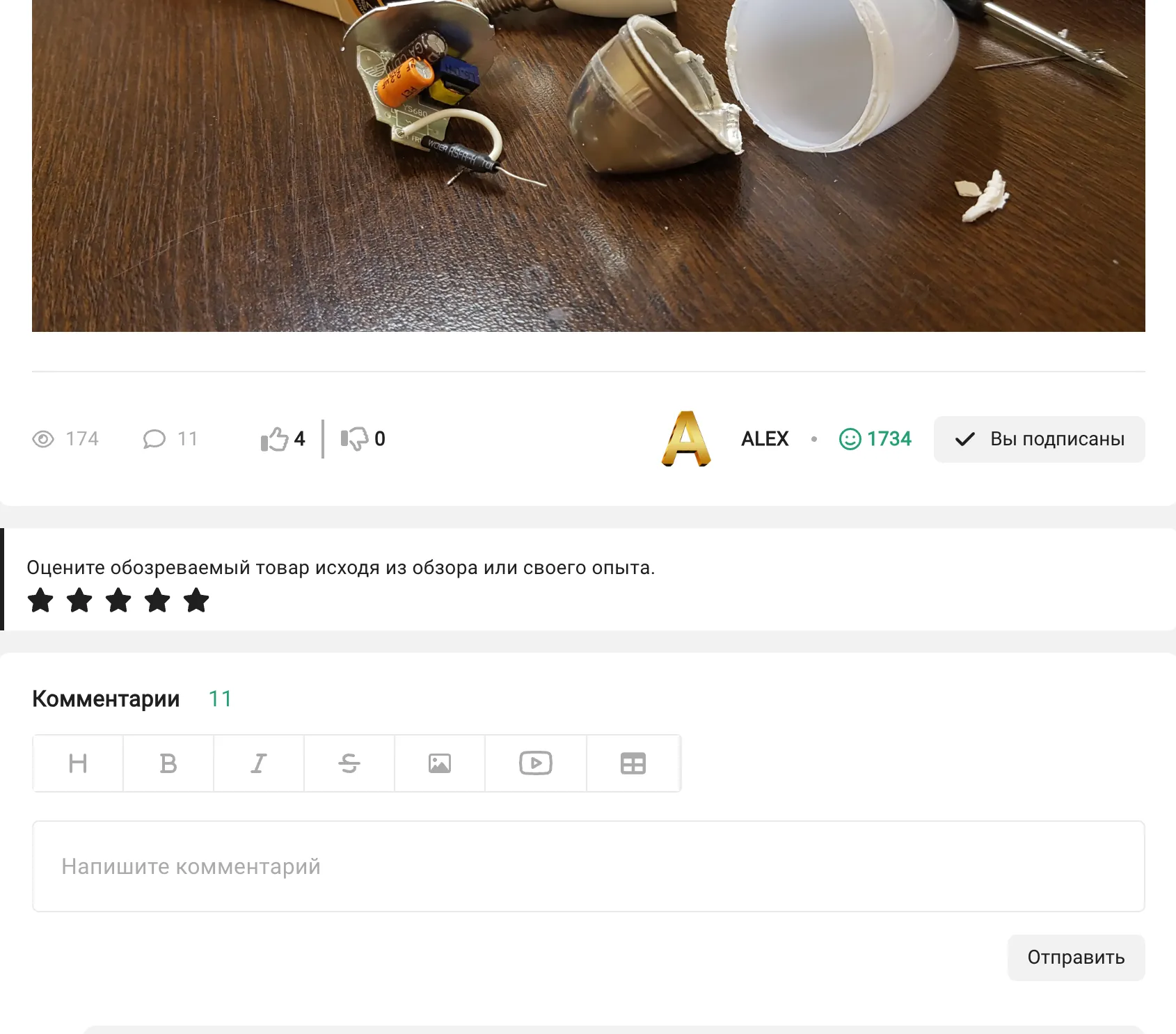Это хорошо. Пятибальная шкала куда лучше лайков. Я например разобрал лампочку, а читатели уже могут поставить ей оценку исходя из обзора:)