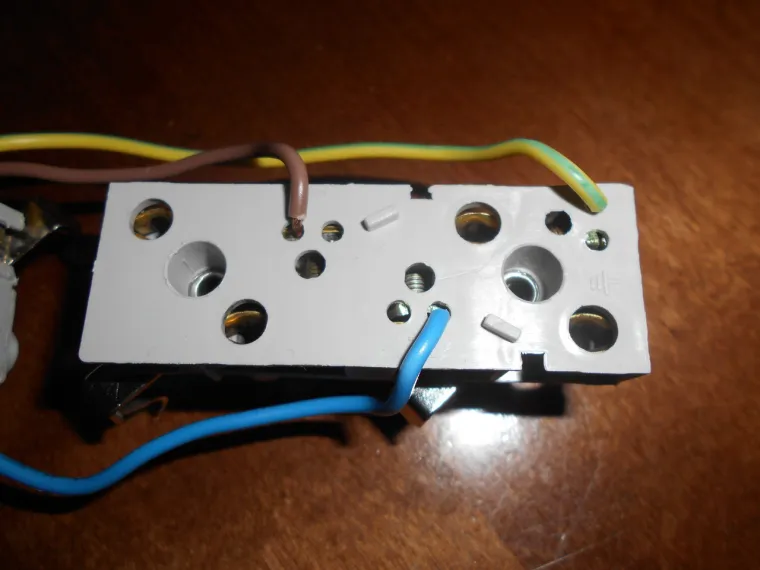 Не идет ни в какое сравнение по сравнению с "элитной" конструкцией... Но в целом, неплохо... Контакты поджимаются с двух сторон зелеными держателями, и если не менять простую вилку на "евровилку" и наоборот, то работать будет неплохо... Еще удивило отсутствие изоляции на индикаторном светодиоде и балластном резисторе. Неужели, не нашлось 5 см термоусадки или какой-то трубки... Средний вывод не подключен, а пайка могла быть и получше... А кнопка разрывает всего один полюс, вместо двух... Отсутствует простейший фильтр в виде пленочного конденсатора...