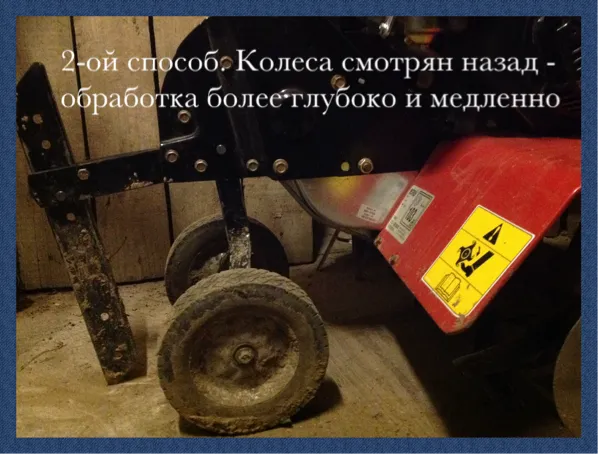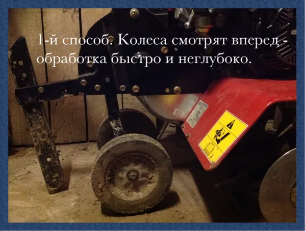 2 Способ - колеса "смотрят " назад. Подходит , если землю надо обработать более глубоко и медленно.