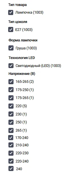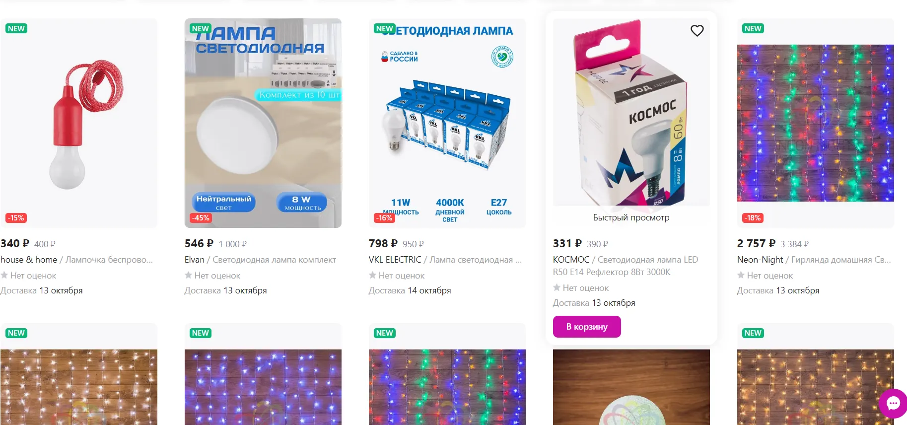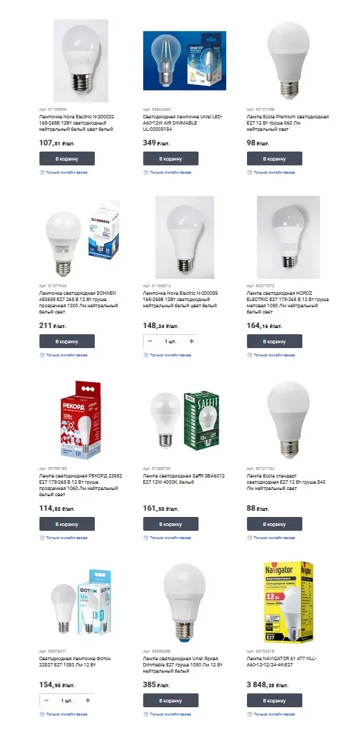 Теперь, предположим, хочу найти что либо новенькое среди ламп "груша" E27 12W 4000К