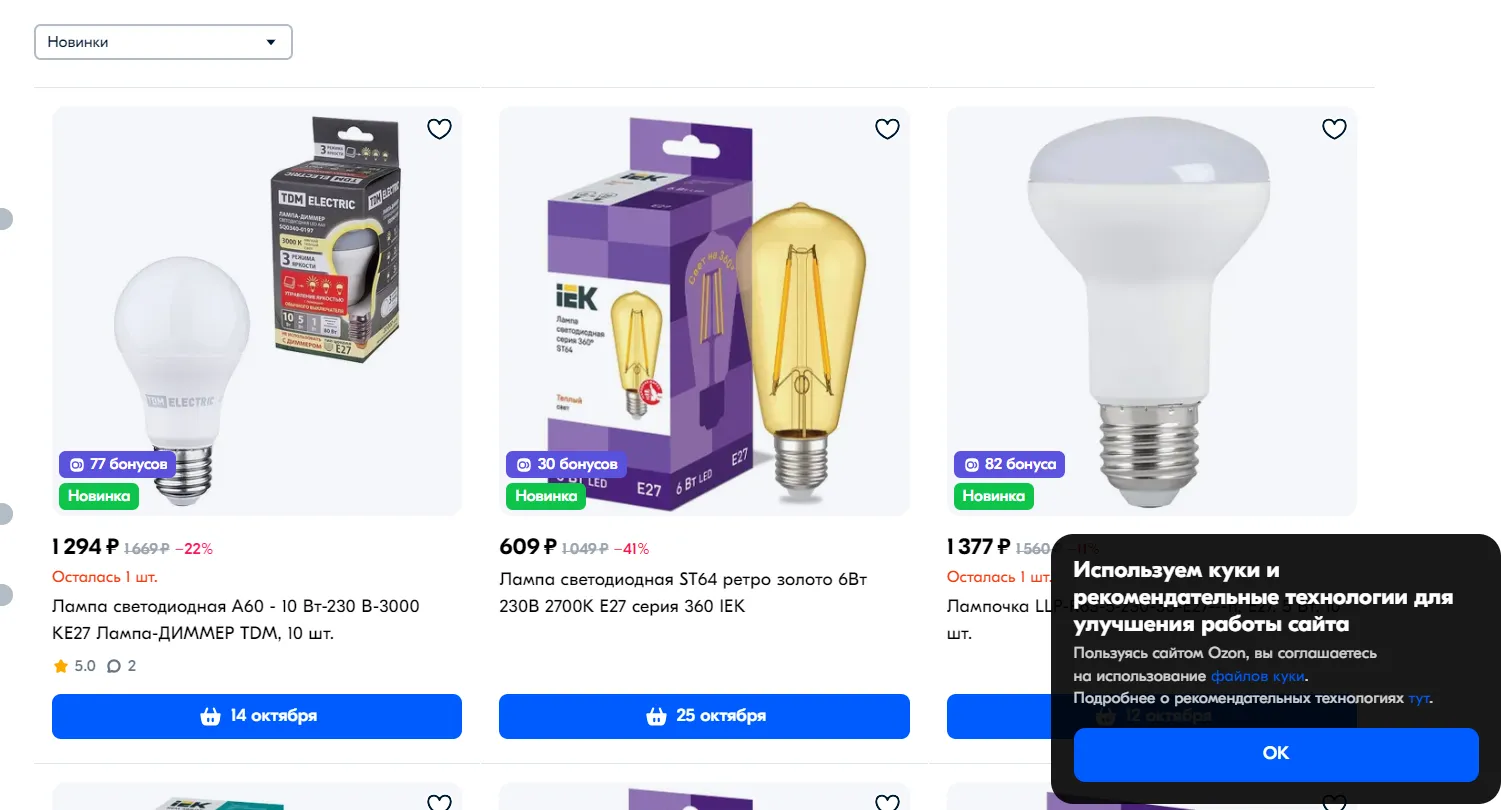 Сразу попробовал отсортировать на маркетплейсах и получил какую-то фигню.. Новинки у них явно не то, что сделали недавно, а то, что появилось от новых продавцов..