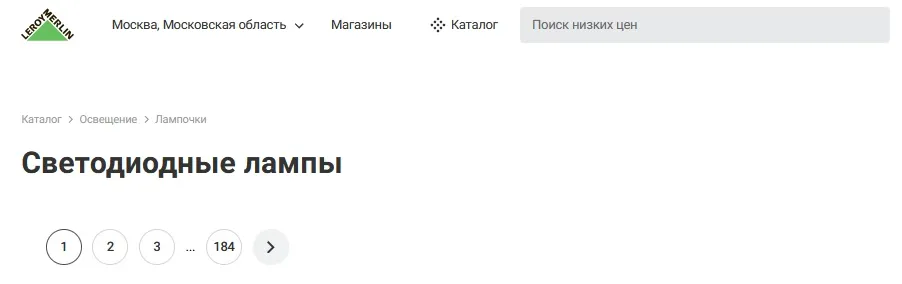 Получаем просто огромный список из 184 страниц, на каждой из которых по 30 ламп :
