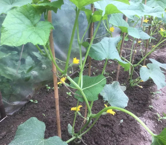 В этом году огурцы в теплице растут не так бурно. Опять надеюсь на урожай.