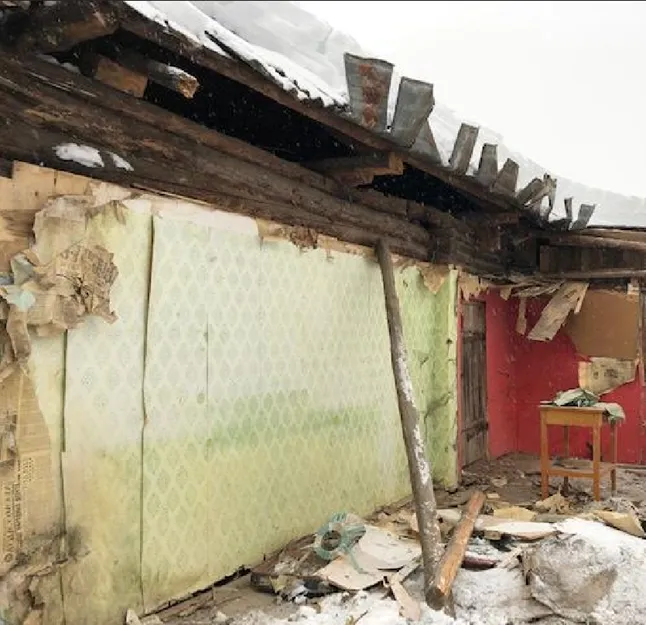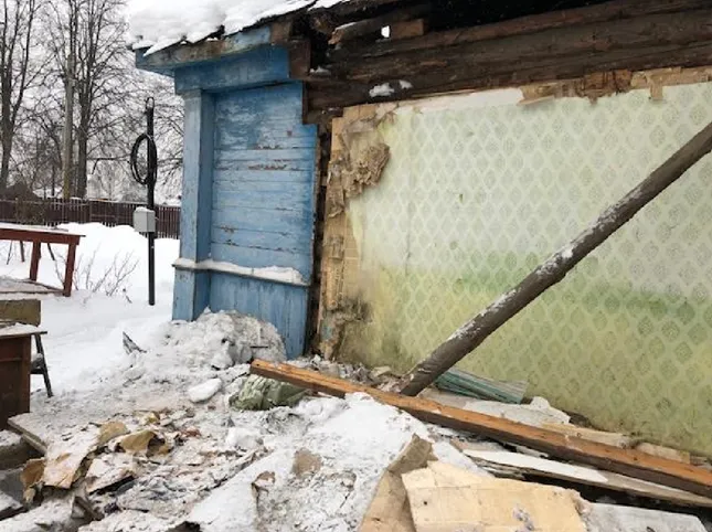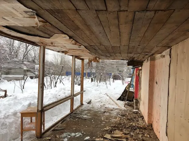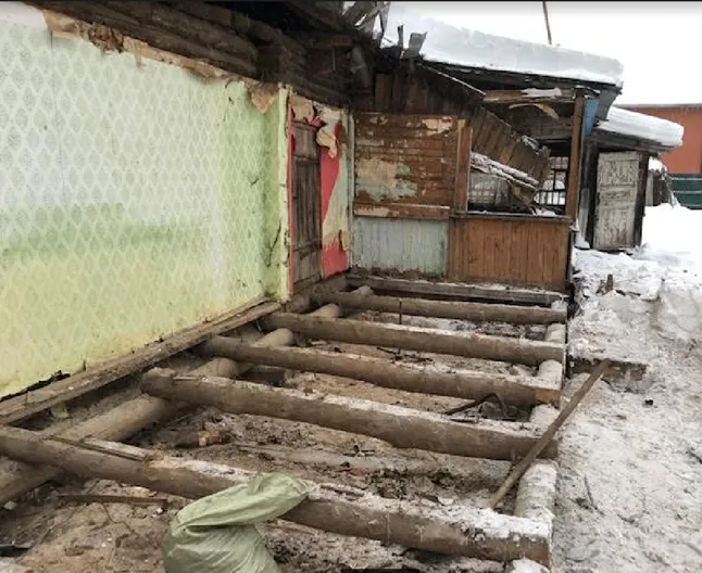 Начало положено. От половины веранды остались тоько здоровенные бревна, на которых был пол.