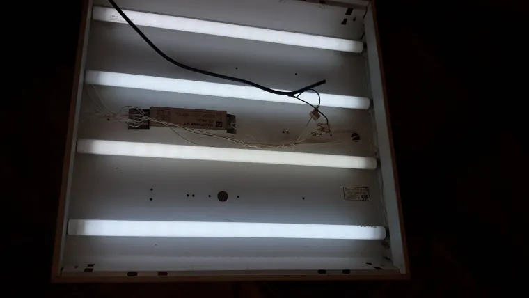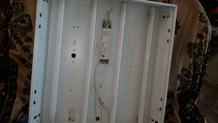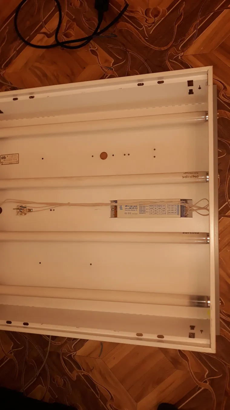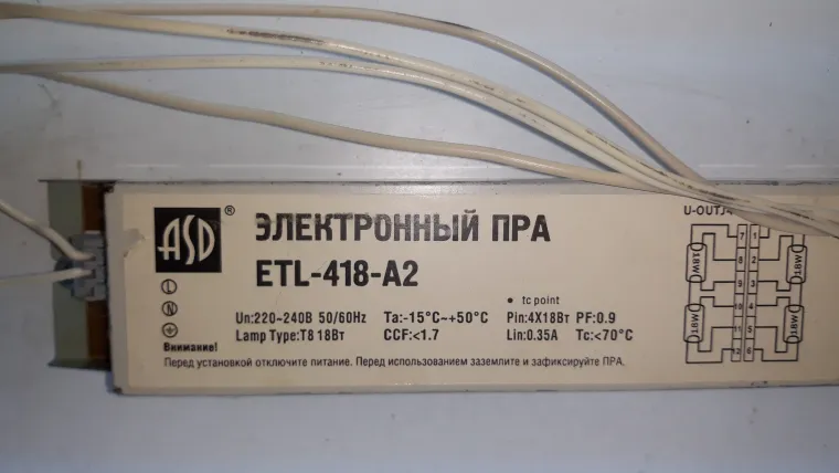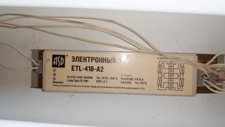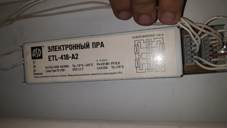 ЭПРА уже другой, какой то колхоз из изоленты и криво вставленные провода которые выпадают из ЭПРА, так и до пожара можно дойти... ЭПРА установлен от компании ASD, наверное родной этому светильнику перегорел как лампочка:)