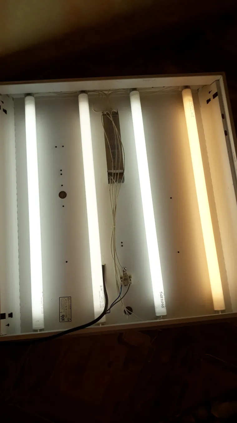 Теперь подведем итоги: из 4 светильников по 4 лампы не исправна всего лишь одна лампа. Получается неисправность 1/16 ламп....остальные лампы изношены но работают, значит что? Светильники свои 50 рублей окупили! ЭПРА и лампы по факту исправны, проблемы с низкой яркостью двух светильников думаю объяснимы сильным износом ламп.... Вот так светодиоды...чей то переход на светодиоды помог мне за 200 рублей получить 4 полностью исправных светильника))) UPD: первый светильник после прогрева минут 20 стал ярким но гудит немного все равно:(