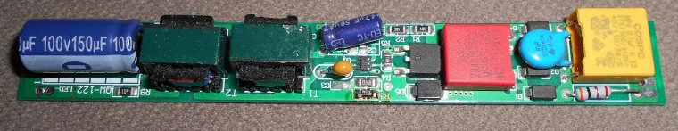 Хотел еще один ЭПРА от ООО "ЭЛиПС-О" выложить . Он 2004 года выпуска и собран на микрухе . Вход 54 Вольта , выход ЛЛ 18-36 Вт . Пропаял кольцевые трещины и все заработало . Зачем отказались от них и перешли на безмикросхемные непонятно . В нем стоит живой мосфет с завода надо у него измерить емкость