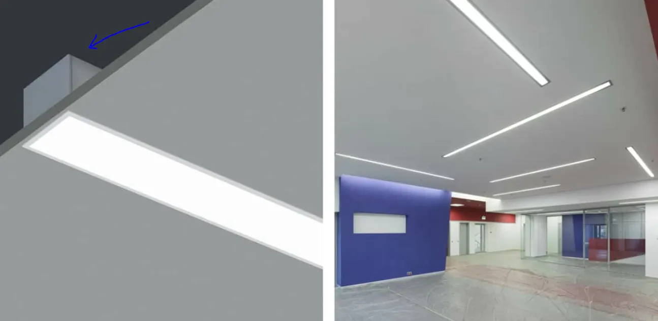 Вы говорите про встраиваемые линейные светильники. Это называется так. Встраиваются они в потолок посредством интеграции в короб, которой будет скрыт от чистовой отделки.