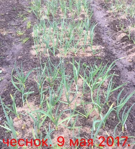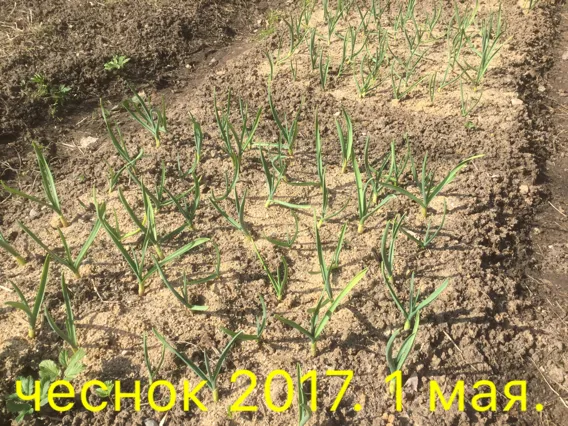 Чеснок сажала озимый. Не признаю другого способа посадки. Считаю этот самым производительным. Все о посадке читайте в http://domorost.ru/topic/525/осенняя-посадка-чеснока. Посадка осенью хороша тем, что осенью можно сосредоточиться только на этом процессе, другие дела уже закончены, да и результаты наилучшие. Вот так чеснок выглядит сейчас.