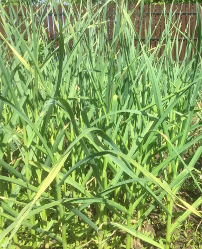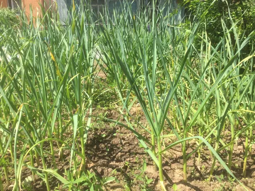 Еще раз повторюсь, что я посадила чеснок из 5 разных источников. На грдке это видно. Теперь фото от 25 июня. Обратите внимание как отличаются растения!